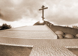Закончить еще не начавшееся строительство планируется к 22 июля, дню Святой равноапостольной княгини Ольги. Или, на худой конец, к 28 августа – Успению Пресвятой Богородицы, престольному празднику Псково-Печерского монастыря. Пока же редактор газеты «Завтра» продемонстрировал журналистам эскиз кургана: листок формата А4, на котором было изображено что-то вроде Мамаева кургана, только с большим черным крестом вместо Родины с мечом. Больше всего «это» напоминало колоссальных размеров могилу и вызывало мысли не столько о будущем величии «Пятой империи», сколько эсхатологические размышления о судьбах несчастной Псковщины.