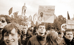 Символика, впрочем, присутствовала, если уж соблюдать точность. Кому в городе неизвестно, что под лозунгом «Сохраним живое сердце Петербурга!» вело последнюю избирательную кампанию «Яблоко»? Кто не распознал в ребятах, развернувших ЧЕРНЫЙ транспарант с буквами «Выйди на улицу! Верни себе город!» петербургских анархистов? Кто не знает, что больших зеленых надувных крокодилов приносят на протестные акции регионалисты из клуба «Ингрия»?