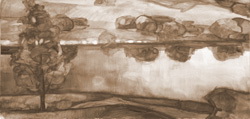 Весь наш мир, конечно – только граница "меж Бога и небытия". С этой границей имеют дело зрение, рисунок и живопись. И для В. П. Смирнова необыкновенно много значат границы между безднами: чаще всего между небесами и их отражением в спокойной воде. Впрочем, смирновские пейзажи дают много вариантов этой темы.