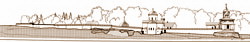 | Панорама Мирожского монастыря со стороны р. Великой. Проект реставрации. В. Е. Никитин. |