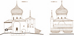 - первоначальный, воплощенный в формах византийского храма XII в;