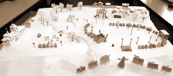 Впрочем, пока что о том, что работа по освоению выделенных на проведение праздника средств уже началась, свидетельствовали лишь установленный в Малом зале псковского Дома Советов макет главной площадки Масленицы, подмигивавший разноцветными лампочками, и развешанные по стенам цветные эскизы декораций.