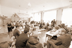 После этого началось обсуждение нужд школы: у губернатора попросили новые компьютеры, немного подискутировали относительно того, есть ли необходимость в интерактивной доске: одни считали, что, конечно, нужна, другие выражали сомнения, смогут ли моринские учителя освоить чудо техники. «И с туалетами надо что-то делать!», - высказал свое мнение относительно первоочередного направления вложения средств глава региона, безошибочно почуяв слабое место школьной инфраструктуры: действительно, школа прямо-таки пропиталась запахом канализации.