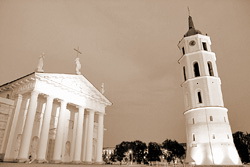 | Вильнюс. Кафедральная площадь. Кафедральный собор с колокольней («Башней Гедиминаса»). Фото: Александр Машкарин |