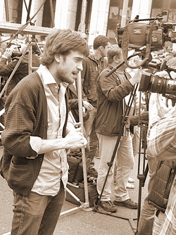 | Пётр Верзилов, которого две осужденные участницы феминистской группы Pussy Riot обвинили в том, что он «странным квазимошенническим образом оккупировал деятельность Pussy Riot». Москва, пр. Сахарова, 15 сентября 2012 г. Фото: Алексей Семёнов |